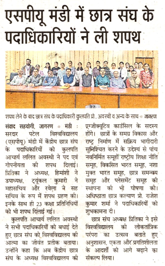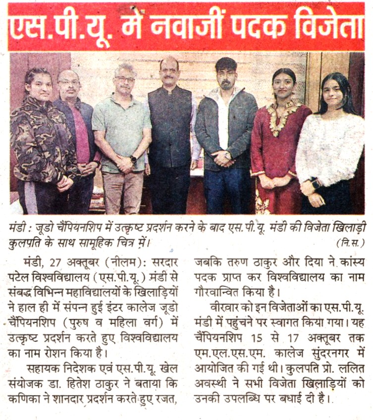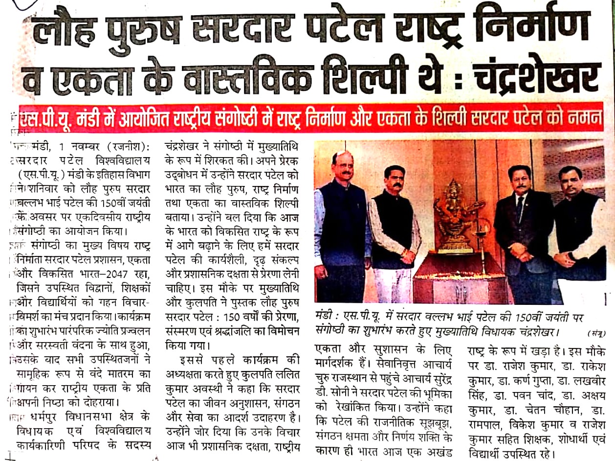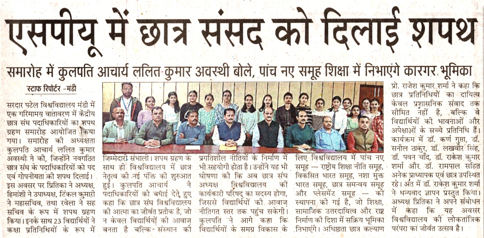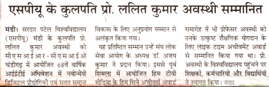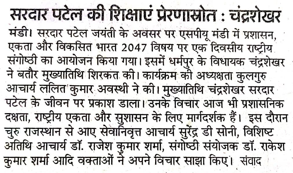 • यू.जी.सी में शामिल सरदार पटेल यूनिवर्सिटी मंडी