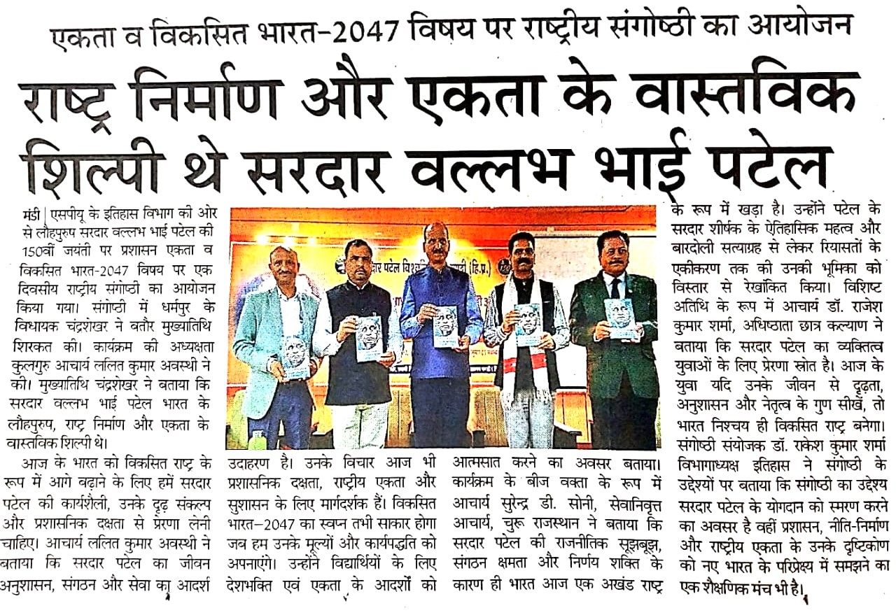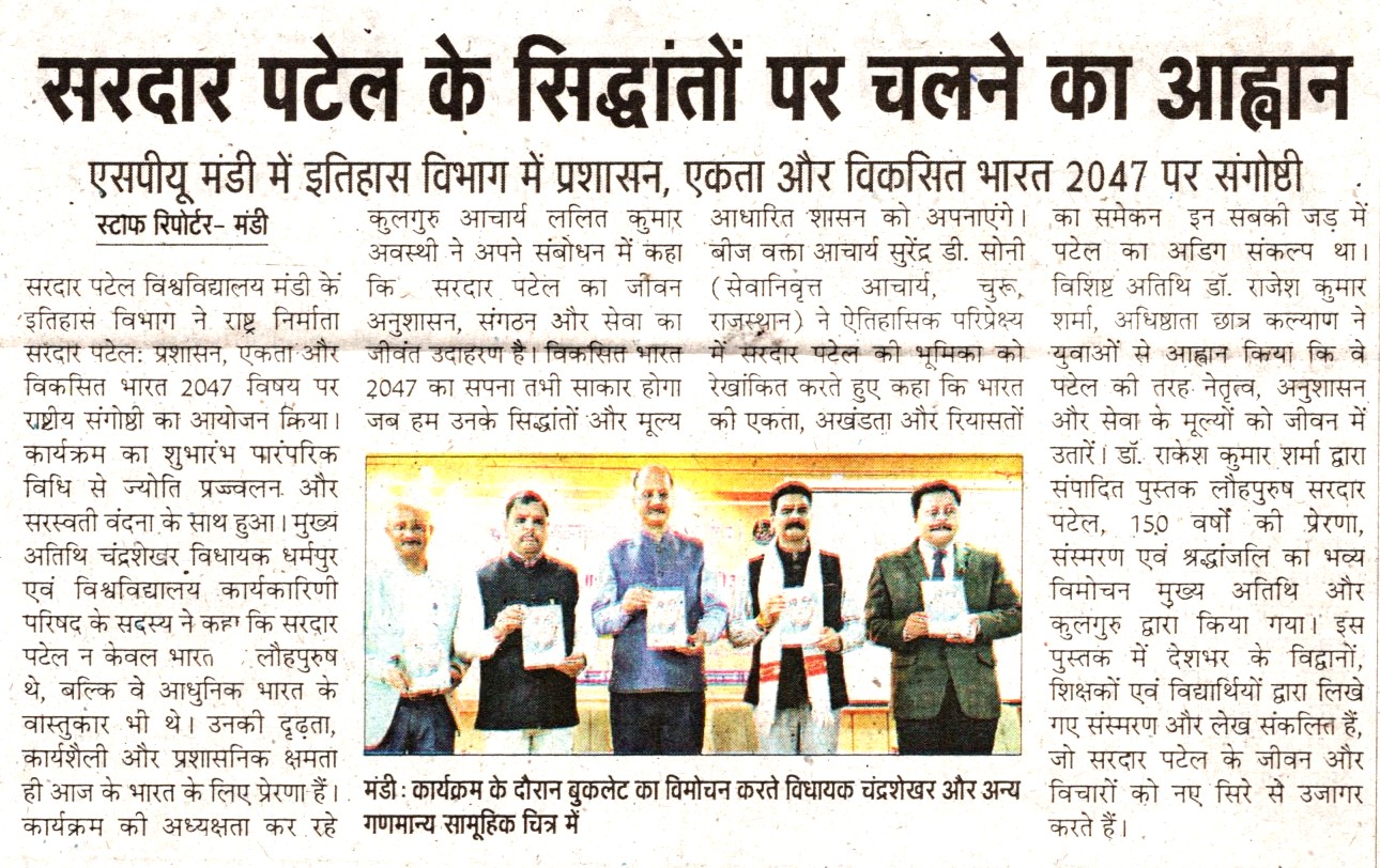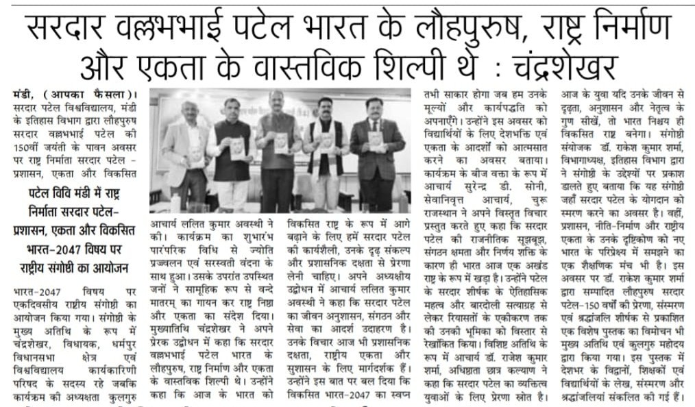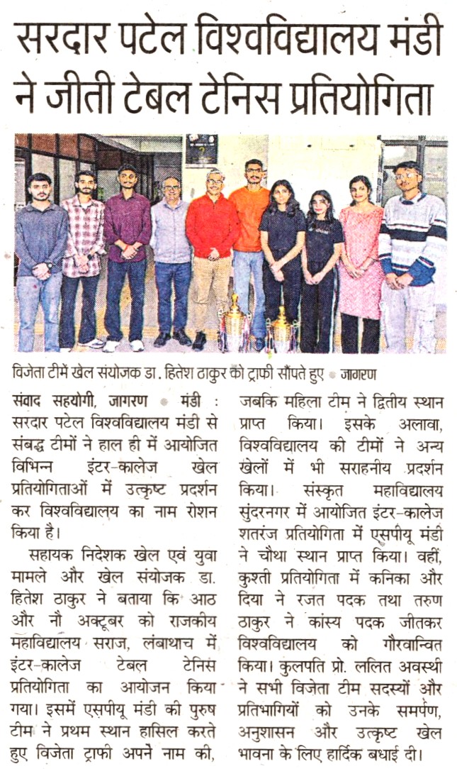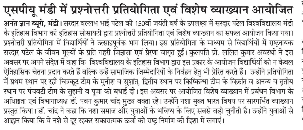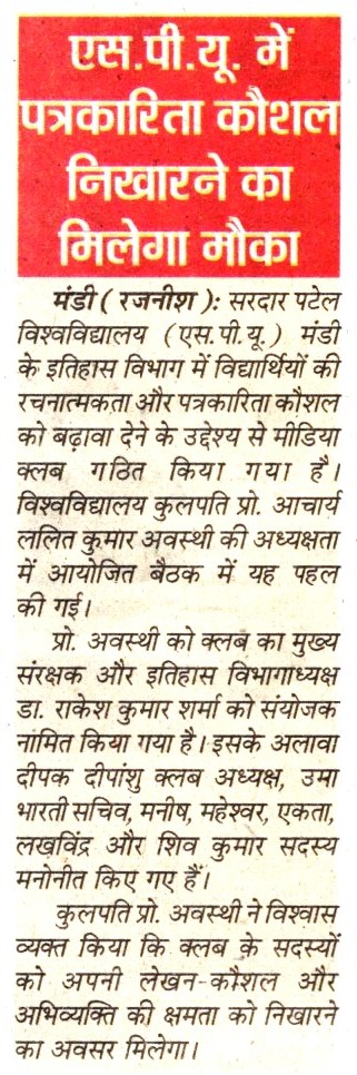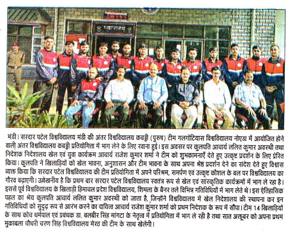 • यू.जी.सी में शामिल सरदार पटेल यूनिवर्सिटी मंडी