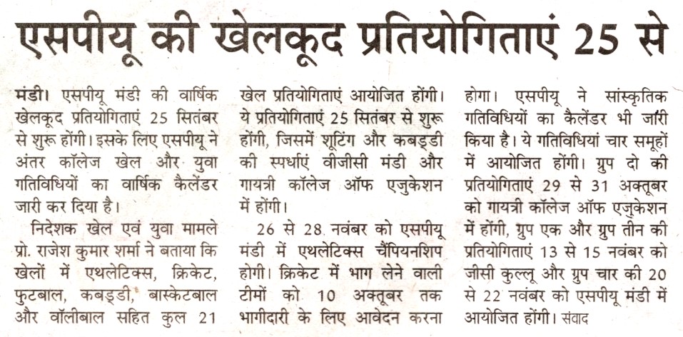 • सरदार पटेल विश्वविद्यालय मंडी करवाएगा बी.एड.