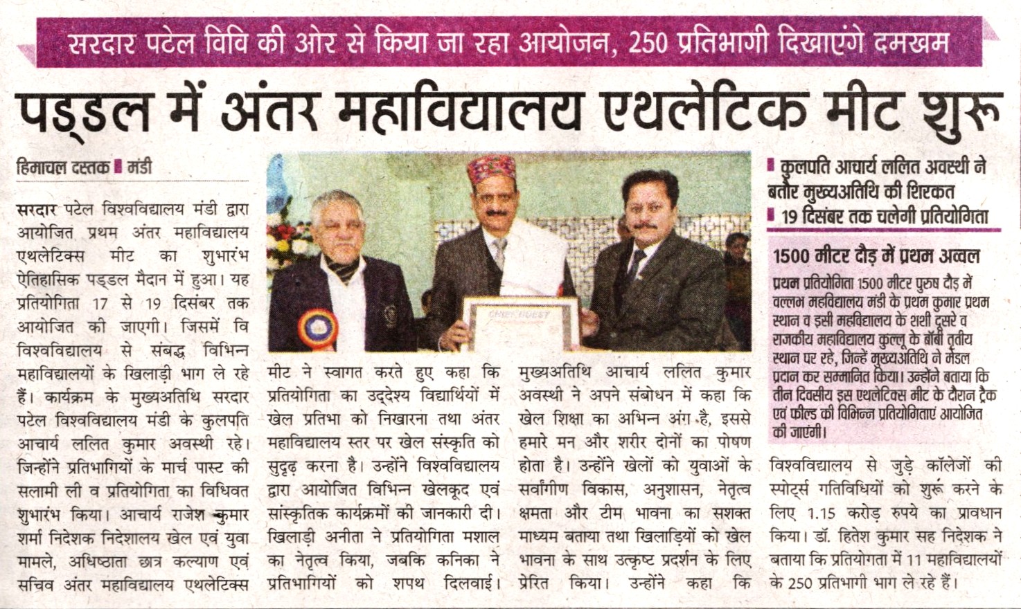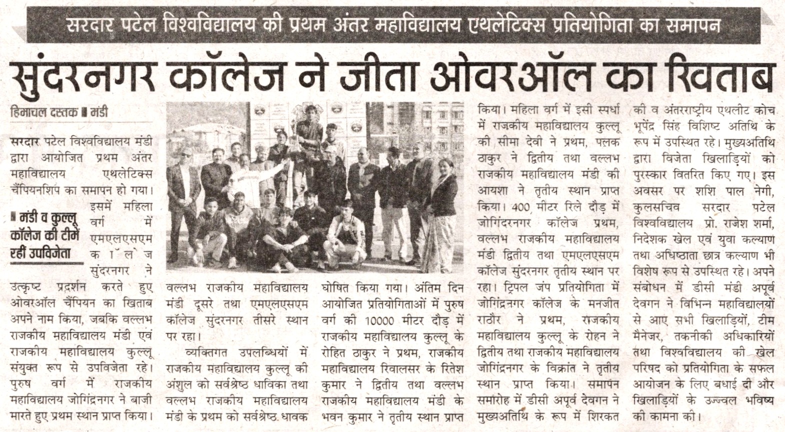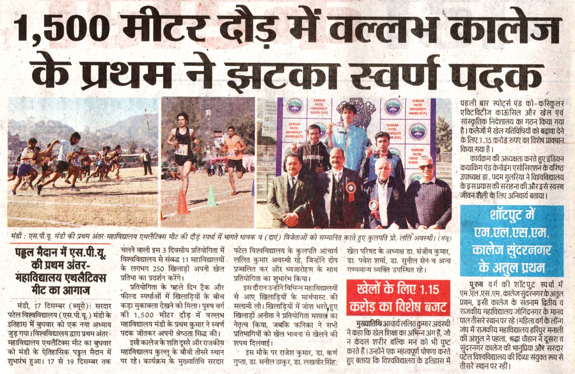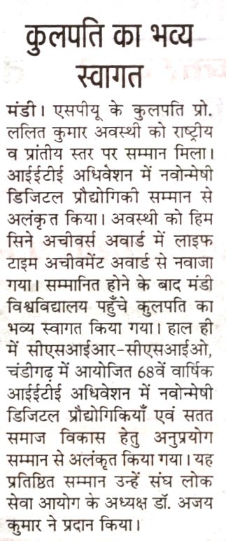 • सरदार पटेल वि वि मंडी को यू.जी.सी से मिली मान्यता