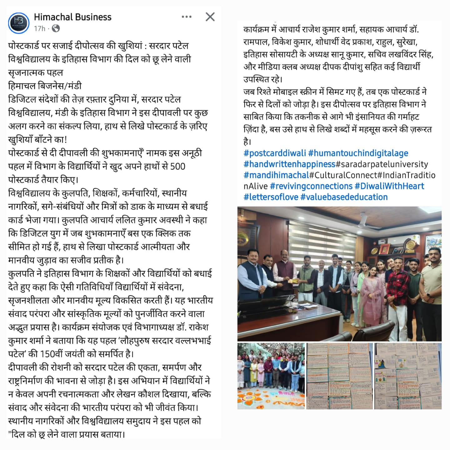 • सरदार पटेल वि वि मंडी को यू.जी.सी से मिली मान्यता