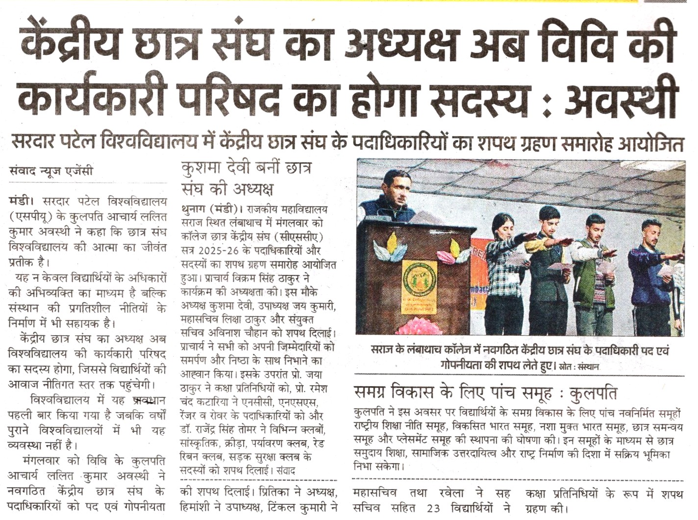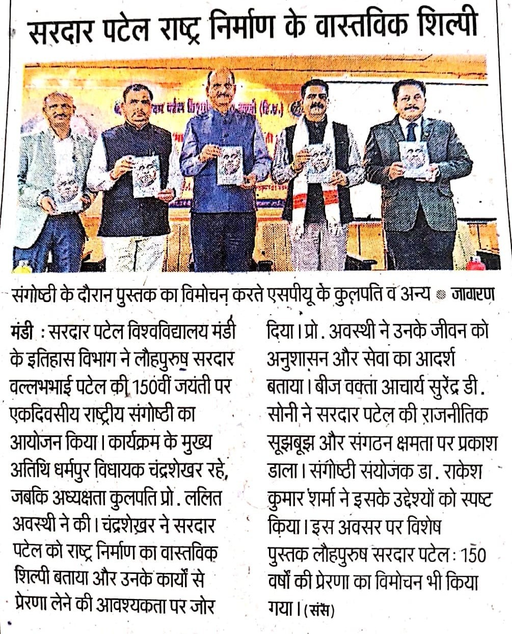 • यू.जी.सी में शामिल सरदार पटेल यूनिवर्सिटी मंडी