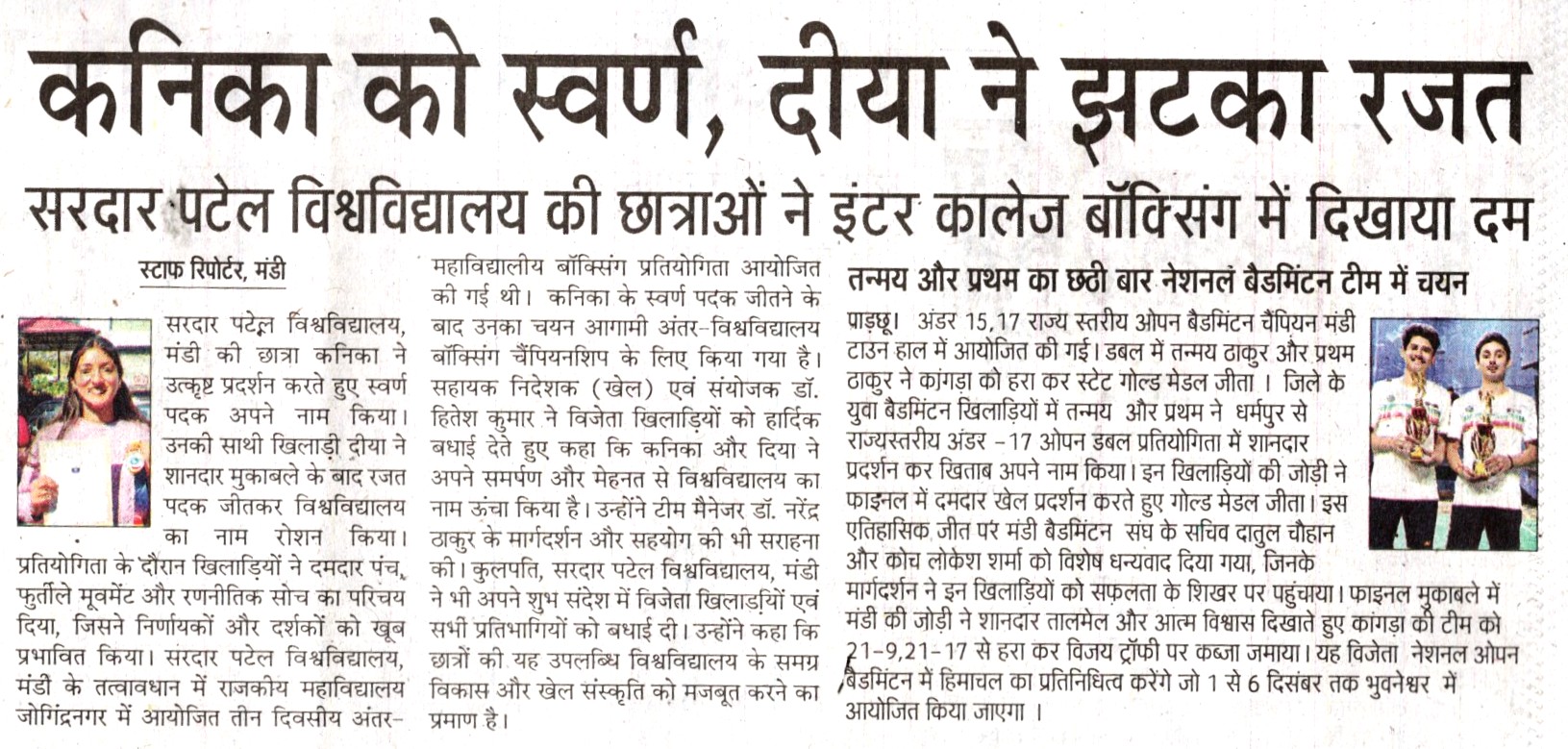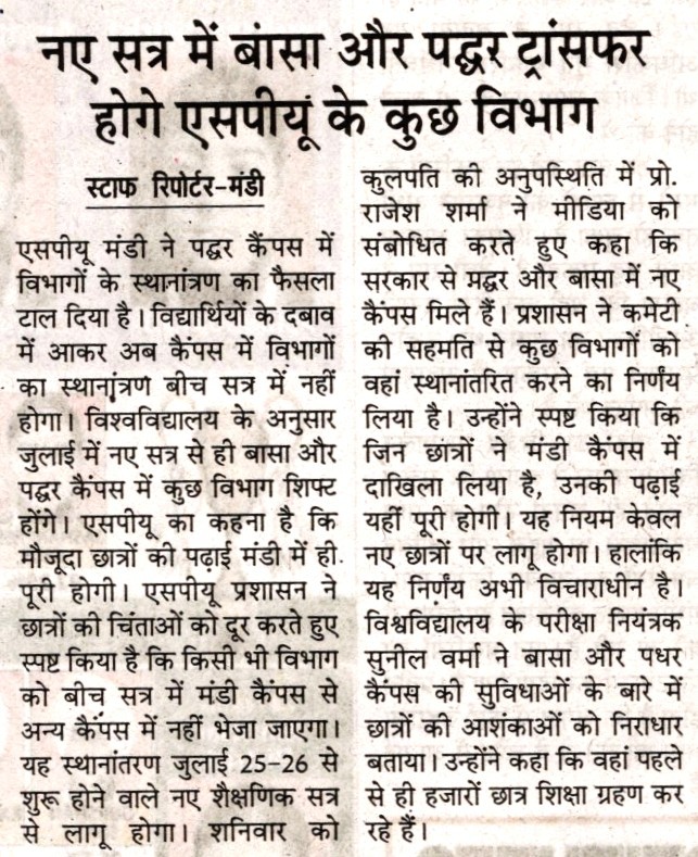 • सरदार पटेल विश्वविद्यालय मंडी करवाएगा बी.एड.