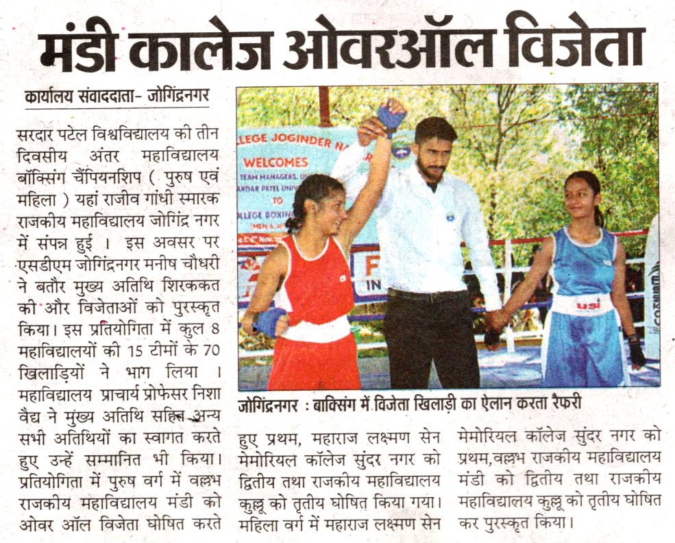 • सरदार पटेल वि वि मंडी को यू.जी.सी से मिली मान्यता