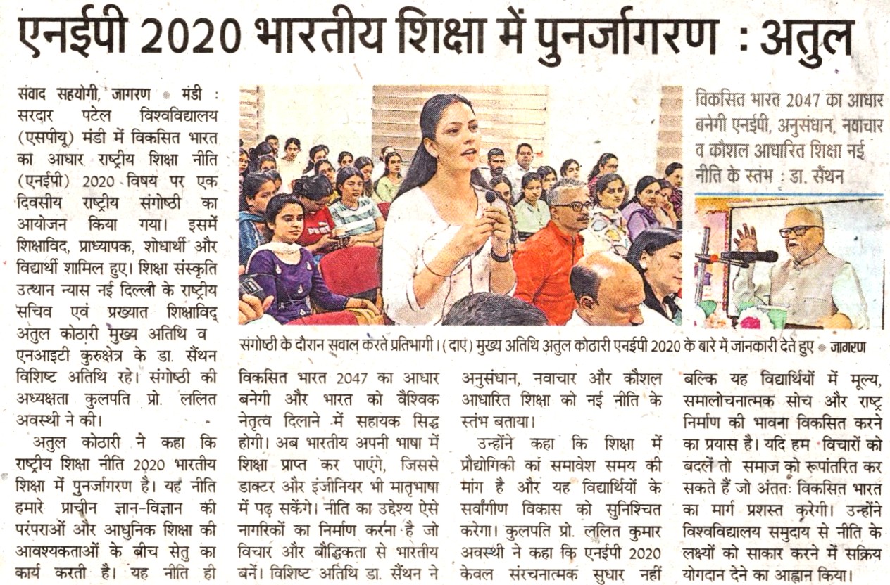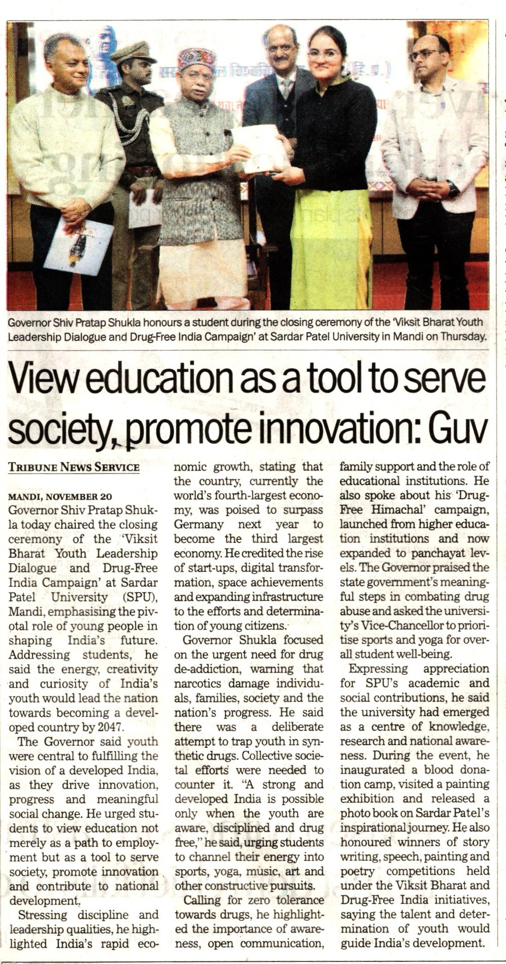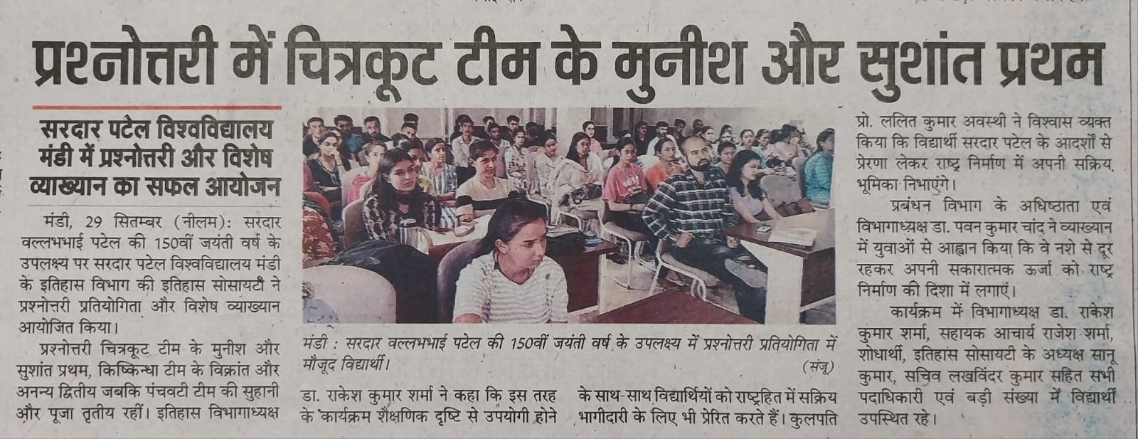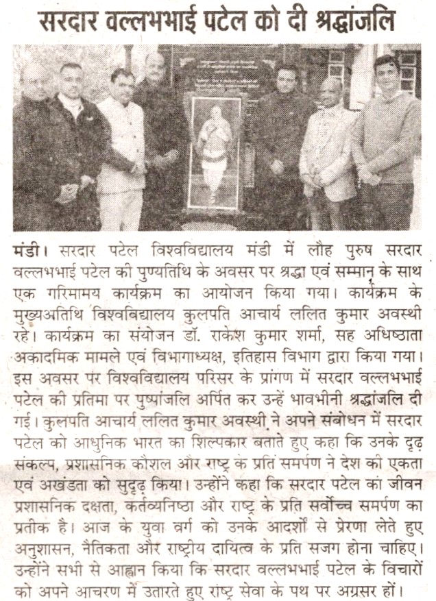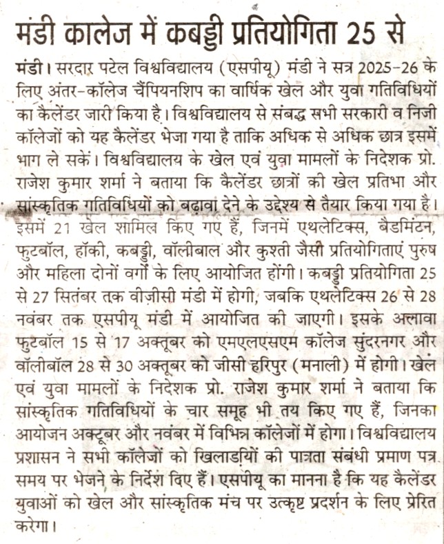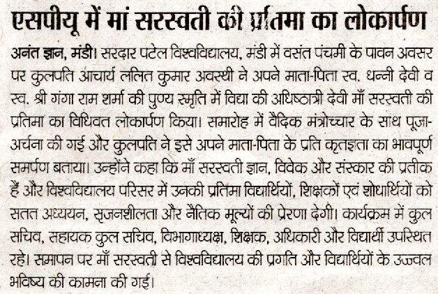 • यू.जी.सी में शामिल सरदार पटेल यूनिवर्सिटी मंडी