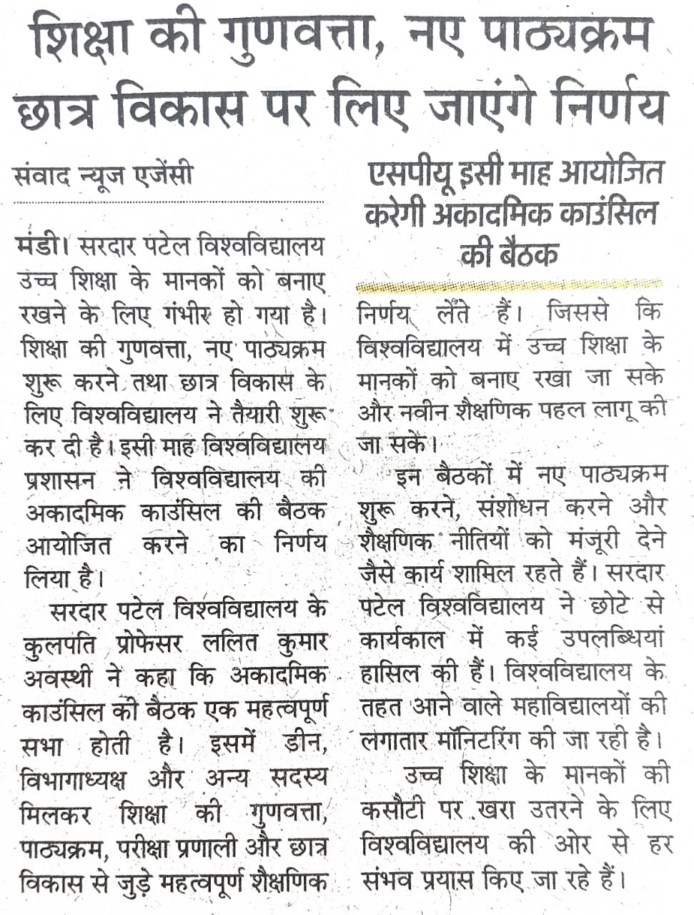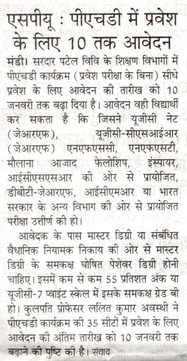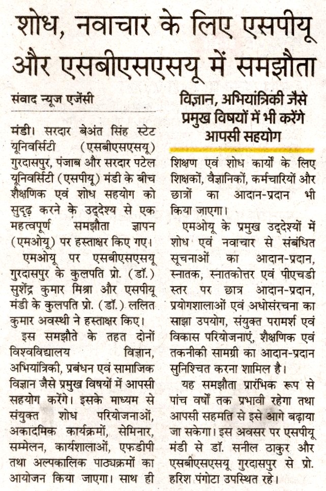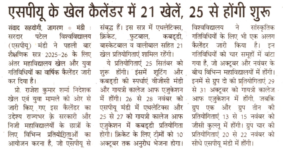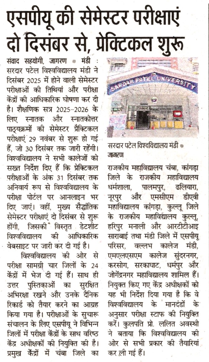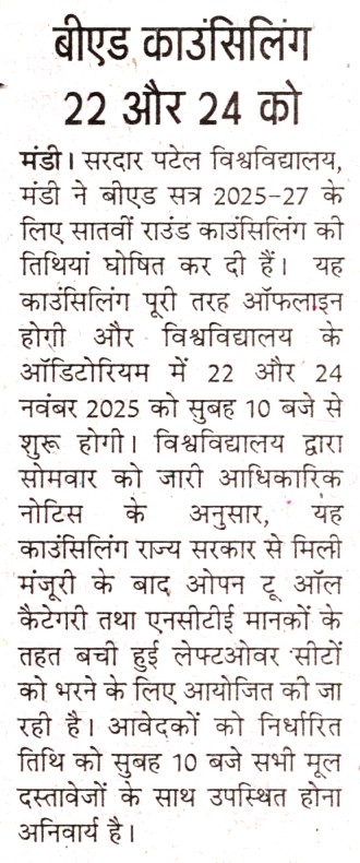• सरदार पटेल विश्वविद्यालय मंडी करवाएगा बी.एड.
