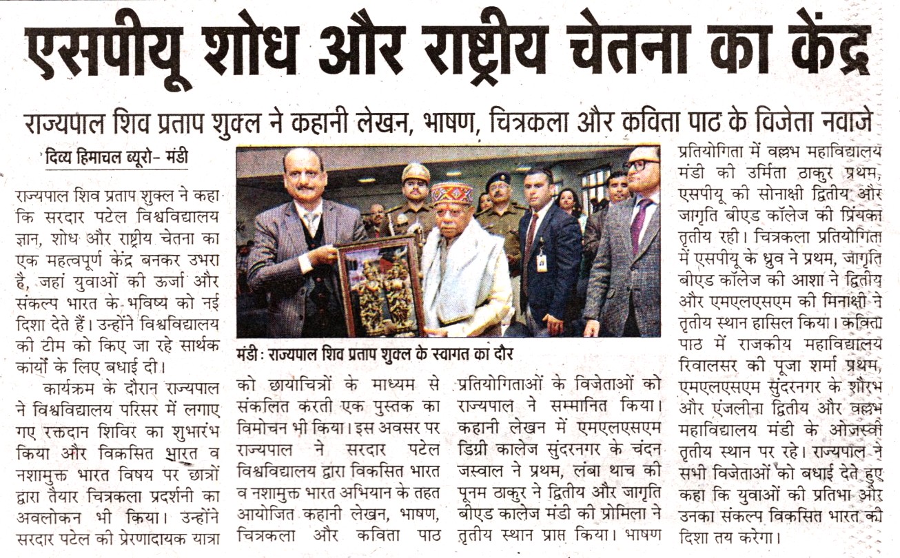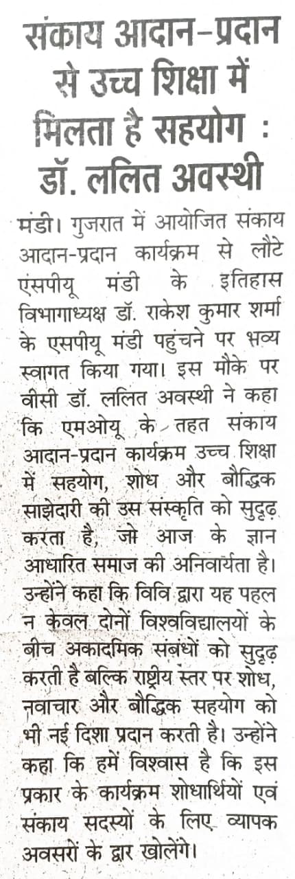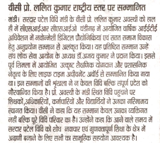 • सरदार पटेल वि वि मंडी को यू.जी.सी से मिली मान्यता